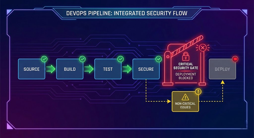 This makes it trivial to block deployments on real risks while allowing non-blocking warnings in early stages.